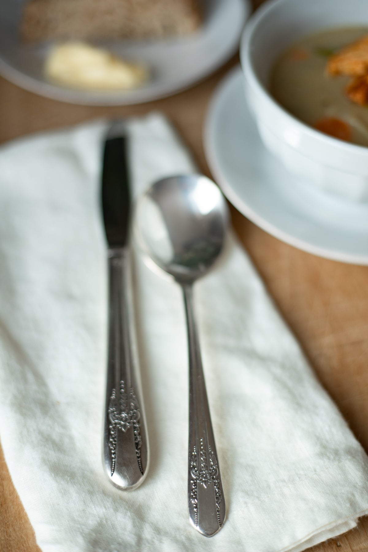 Vintage Silver Soup Spoons and Knives - Set of 6