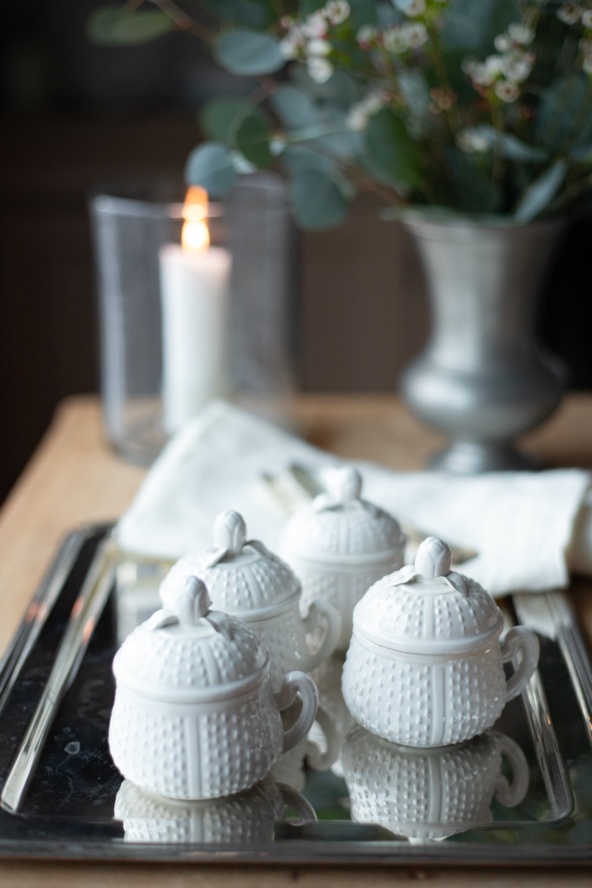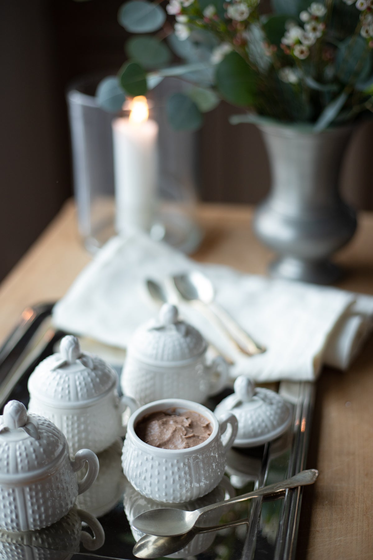 This set of four, antique pots de creme pots add just that special, elegant touch to intimate gatherings. Designed specifically to hold pots de creme, they could alternatively be filled...